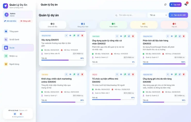✅ Quản lý dự án theo mô hình Kanban, Gantt Chart chuẩn quốc tế.